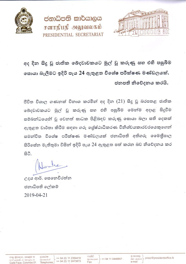 පිපිරීම් වලට හේතුව සෙවීමට ජනාධිපතිගෙන් පරීක්ෂණ මණ්ඩලයක්..
