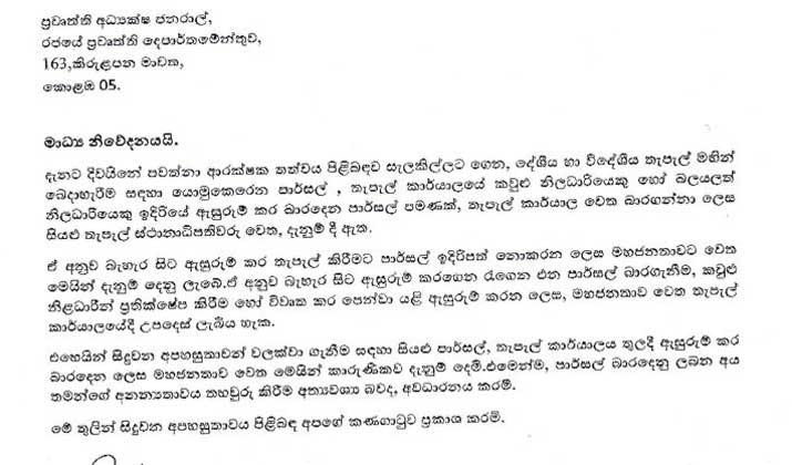 පාර්සල් තැපැල් කාර්යාලයේදිම ඇසුරුම් කරන්න