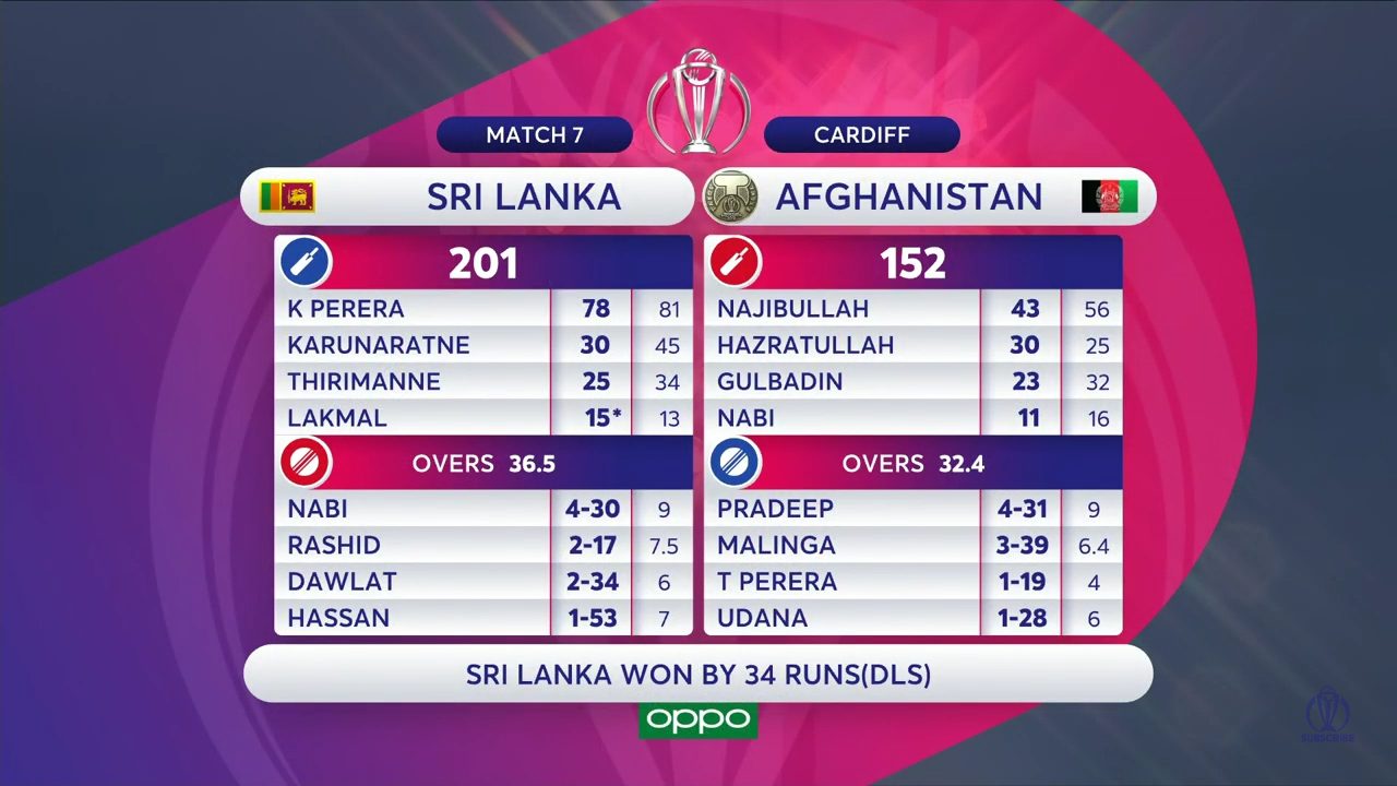 ඒ අනුව පන්දුවාර 32 යි පන්දු 04 කදි ඇෆ්ගනිස්තාන කණ්ඩායමට සියලු දෙනා දැවි ලබාගත හැකි වුයේ ලකුණු 152 ක් පමණි.
