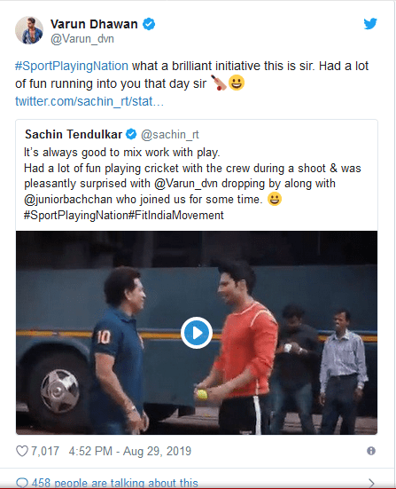 එපමණක් නොව, සචින් සහ වරුන් විසින් වීඩියෝ පටයක් නිපදවා යෝග්‍යතාවයේ වැදගත්කම පිළිබඳව සාකච්ඡා කළ අතර ෆිට් ඉන්දියා ව්‍යාපාරය දියත් කිරීම පිළිබඳව අගමැති නරේන්ද්‍ර මෝදිට ප්‍රශංසා කළහ.