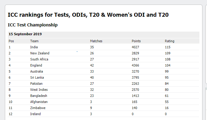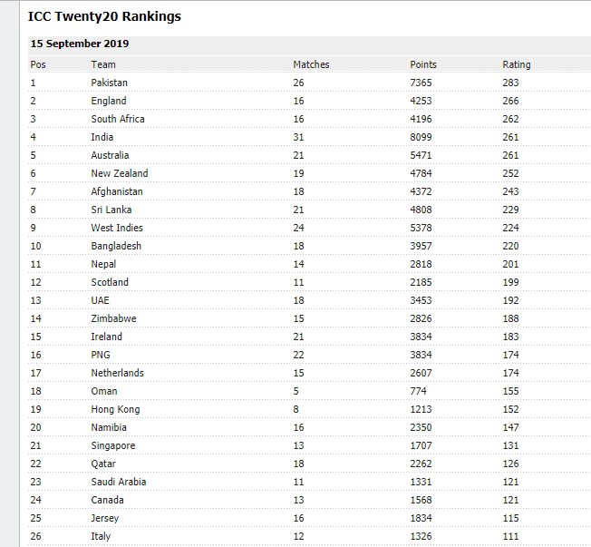 ජාත්යන්තර මෙන්ම දකුණු ආසියාතික රටවල්වලින් ප්රථම ස්ථානය ශ්රේණිගත කිරිම්වලට අනුව ලබාගැනීමට ඉන්දියාව සමත්ව තිබෙන අතර ලංකාව දකුණු ආසියාතික රටවල්වලින් දෙවන ස්ථානය ශ්රේණිගත කිරිම්වලට අනුව ලබාගෙන තිබේ.