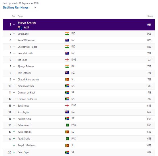 ලොව ටෙස්ට් පිතිකරුවන් ශ්රේණිගත කිරීම් ලැයිස්තුවේ පෙරමුණ ගැනීමට ඕස්ට්රේලියාවේ ස්ටීව් ස්මිත් සමත්ව තිබේ.