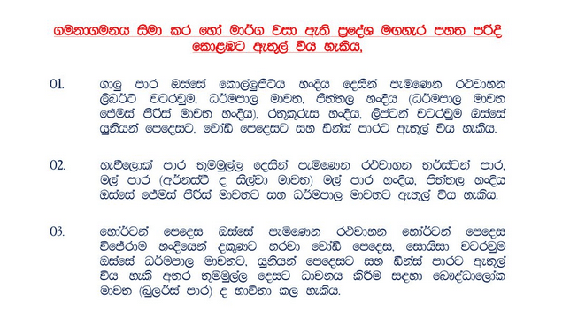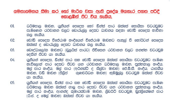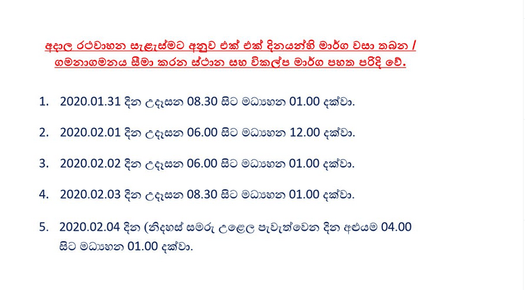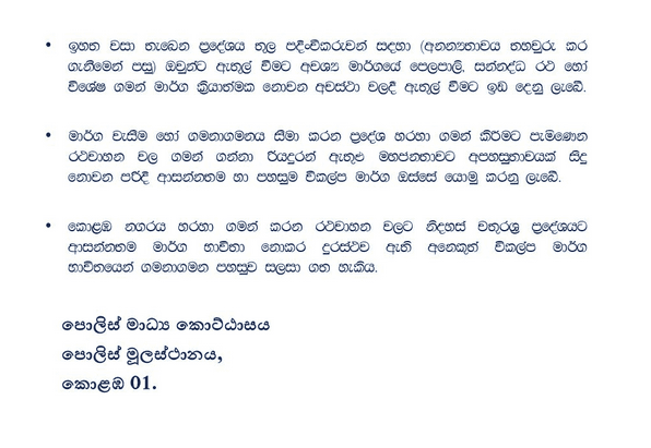 ඒ වෙනුවෙන් කොළඹ ප්රදේශයේ විශේෂ රථවාහන සැලැස්මක් ක්රියාත්මක කර ඇත.