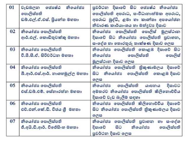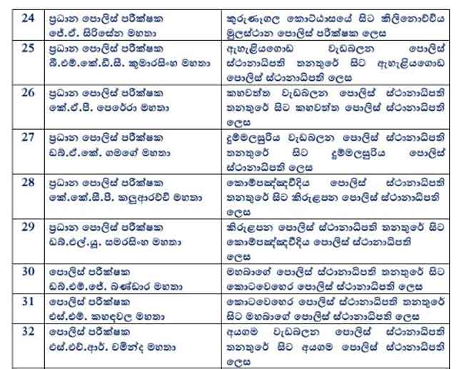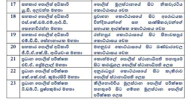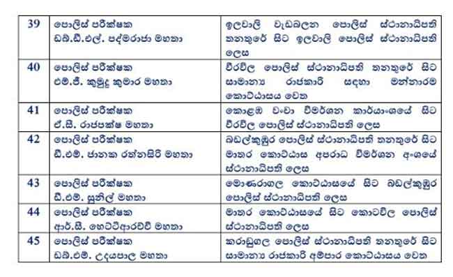 එලෙස ස්ථාන මාරු වීම් සිදුකල පොලිස් නිලධාරීන්ගේ සම්පුර්ණ විස්තර පහතින්.