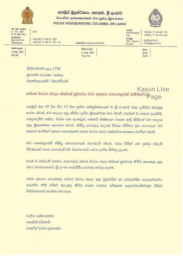 එවැනි අසත්ය ප්රවෘත්ති පළ කළ පුද්ගලයින්ට එරෙහිව නීතිමය පියවර ගැනීමට කටයුතු කරන බව නියෝජ්ය පොලිස්පතිවරයා වැඩිදුරටත් සඳහන් කරයි.