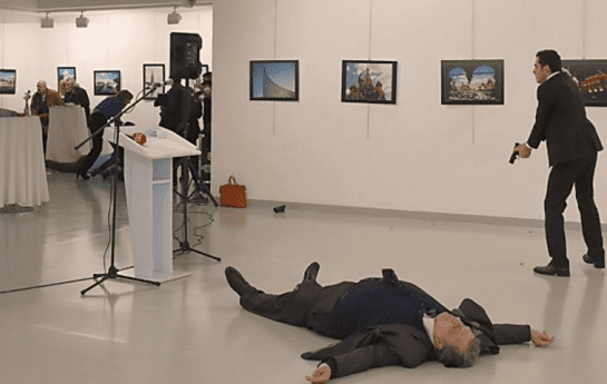 අන්කාරා නුවර පැවැති ඡායාරූප ප්රදර්ශනයකට සහභාගීවී සිටියදී තුර්කියේ හිටපු කැරලි මර්දන භටයකුගේ වෙඩි පහරට ලක්ව තුර්කියේ රුසියා තානාපති අන්ද්රේ කාලොෆ්…