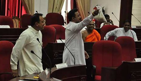 අද(14) දිනයේ රැස් වූ දකුණු පළාත් සභාව තුලට සන්ධාන මන්ත්රී පිරිසක් විසින් හාල්, පොල්, පරිප්පු ආදිය ගෙන ඒම නිසා සභාව…
