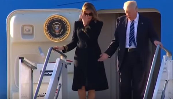 ඉතාලිය බලා පැමිණි ඇමරිකානු ජනාධිපතිවරයා සහ ආර්යාව ගුවන් තොටුපළේදී ගුවන් යානයෙන් ගොඩබසින අවස්ථාවේ මෙලානියා ට්රම්ප් විසින් ඇමරිකානු ජනාධිපතිවරයාගේ අත ගසා…