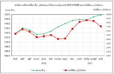 2017 අප්රේල් මාසයේ උද්ධමනය 8.4% සිට 2017 මැයි මාසයේ වාර්ෂික උද්ධමනය 7.1%කට අඩු වී ඇති බව ජාතික පාරිභෝගික මිල දර්ශකය…