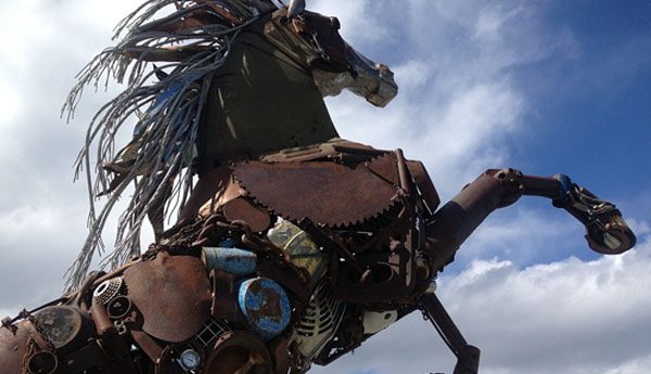 නාඋල පොලිස් ස්ථානය ආසන්නයේ ගරාජයක ගොඩ ගැසී තිබූ අබලි යකඩ කැබලි යොදාගෙන නිර්මාණයක් කර ඇති අතර මින් අශ්වයකු දෙපයින් නැගී…