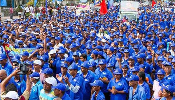 බොරැල්ල කැම්බල් පිටියේ පැවති ශ්රී ලංකා නිදහස් පක්ෂ 66 වන සම්මේලනයට පැමිණෙමින් සිටි පිරිසක් ‘රනිල් අපිට-අපි රනිල්ට’ යයි සටන් පාඨ…