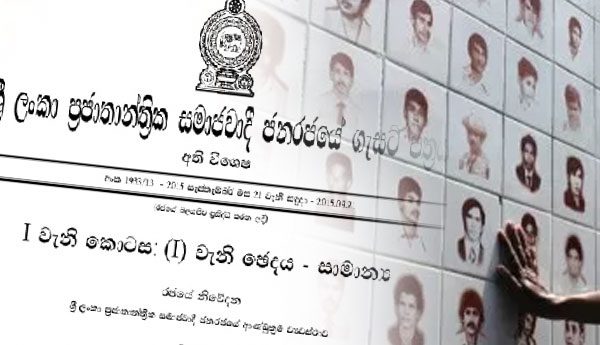 ජනාධිපති මෛත්රිපාල මහතා ඊයේ (12) දිනයේ අත්සන් තබන ලද අතුරුදන්වූ තැනැත්තන් පිළිබඳ කාර්යාලය ක්රියාත්මක කිරීමේ ගැසට් නිවේදනය ප්රකාශයට පත් කර…