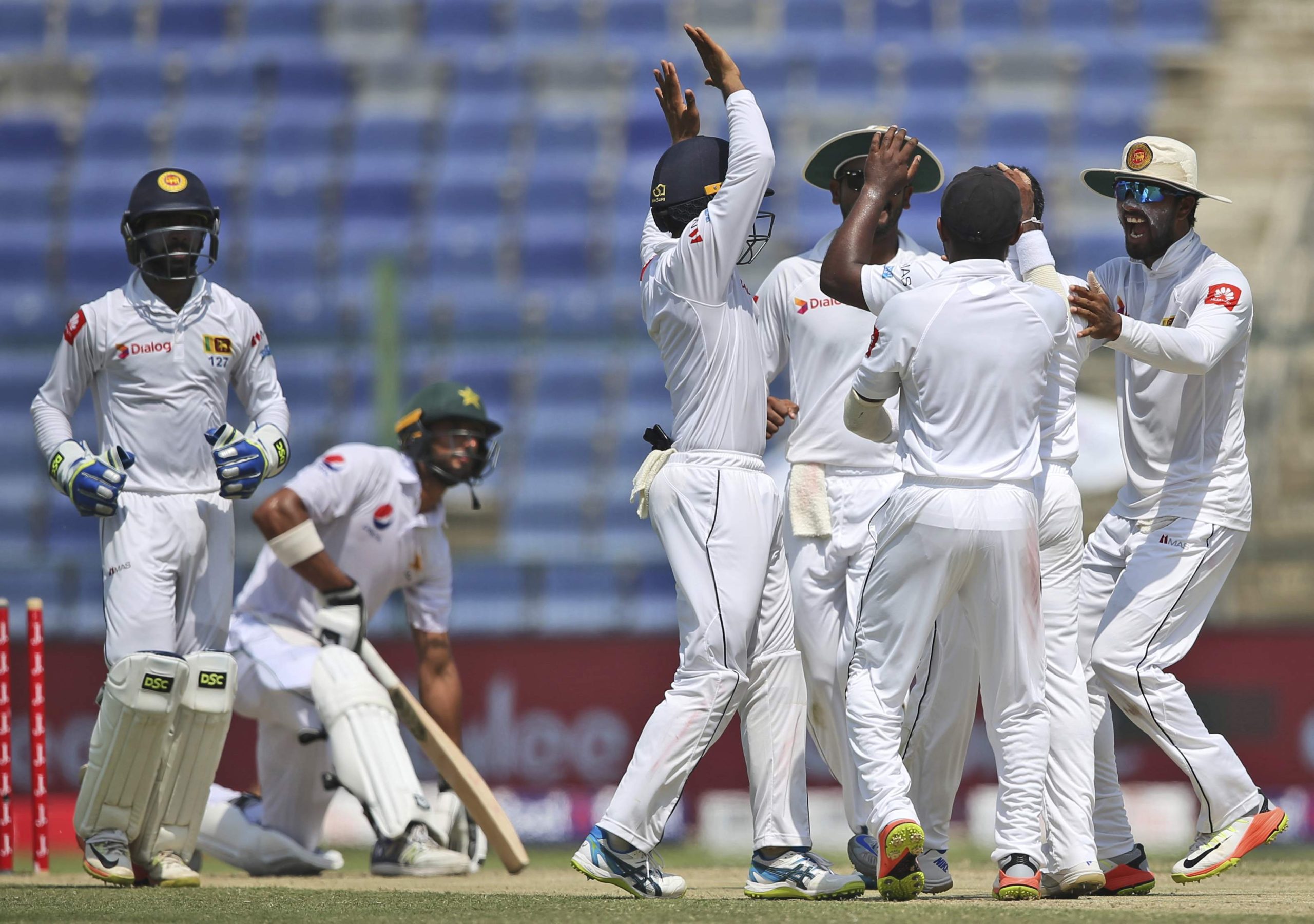 ශ්රී ලංකා කණ්ඩායම අබුඩාහි පැවැත්වෙන පළමු ටෙස්ට් ක්රිකට් තරගයේ සිය පළමු ඉනිම ක්රීඩා කළ පාකිස්තාන කණ්ඩායම සියළු දෙනා දැවී ලකුණු…