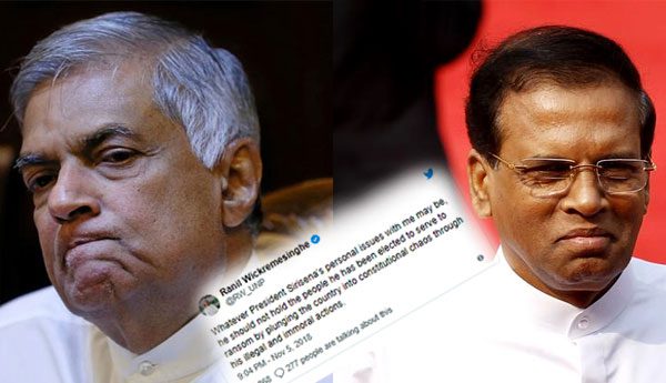 හිටපු අගමැති රනිල් වික්රමසිංහ මහතා සම්බන්ධයෙන් ජනපති මෛත්රීපාල සිරිසේන මහතා ඊයේ (05) පාර්ලිමේන්තු පරිශ්රයේ “ජන මහිමය” රැළියේදී දැක්වූ අදහස් සම්බන්ධයෙන්…