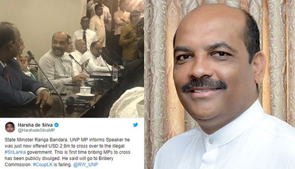 වත්මන් දේශපාලන තත්ත්වය හමුවේ පක්ෂ මාරු කිරීම වෙනුවෙන් තමන්ට ඩොලර් මිලියන 2.8 ක ලංසුවක් පැමිණි බව එක්සත් ජාතික පක්ෂ පාර්ලිමේන්තු…