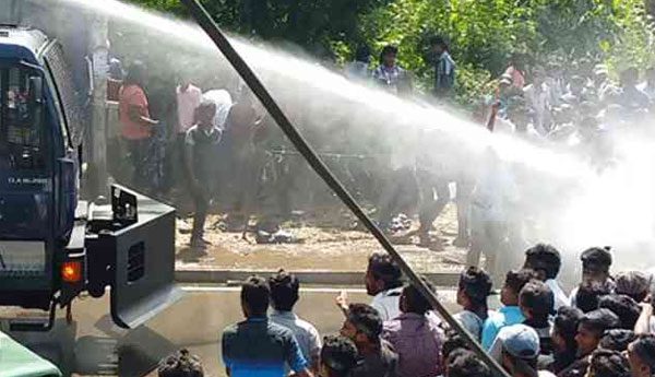 අන්තර් විශ්ව විද්යාලයීය බලමණ්ඩලයේ සිසුන් පිරිසක් විසින් දියත් කර ඇති විරෝධතා පා ගමනට පොලිසිය විසින් කදුළු ගෑස් හා ජල ප්රහාර…