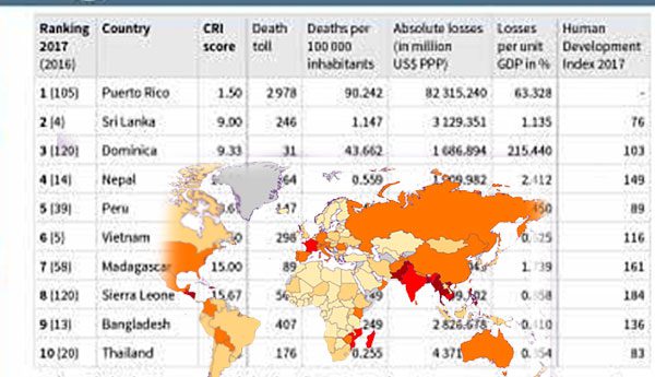2019 වසරේදී ලෝකයේ වැඩිම කාලගුණික අවධානමක් ඇති රටවල් අතරින් දෙවැනි ස්ථානයට ශ්රී ලංකාව පත්ව ඇත. මේ පිළිබදව සටහන් වී ඇත්තේ…