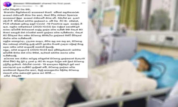 (ෆාස්ට් නිව්ස් | කොළඹ) – මේ වන විට කොවිඩ් වෛරසය ආසාධනය වී රෝහල් ගතව ප්රතිකාර ලබන පුද්ගලයෙකු සිය මුහුණු පොතේ…
