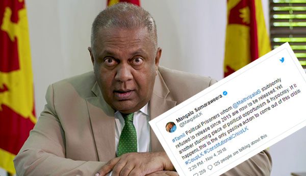 දමිළ දේශපාලන සිරකරුවන් නිදහස් කිරීමට ජනාධිපතිතුමා සහ අගමැතිතුමා කටයුතු කරයි නම් මෙම අර්බුදයෙන් ඇතිවන එකම හොඳ එය වනු ඇති බව…