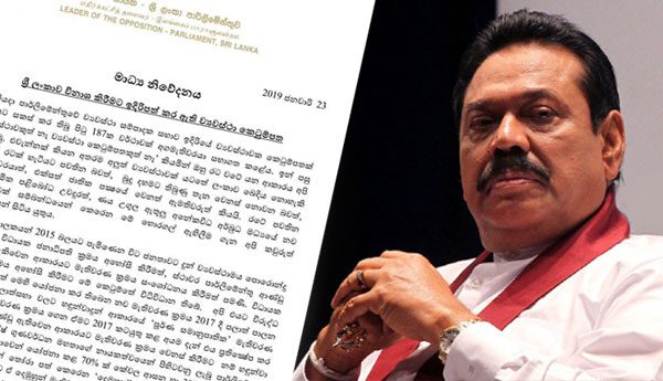 පාර්ලිමේන්තුවට ඉදිරිපත්වී ඇති ව්යවස්ථා කෙටුම්පත සම්බන්ධයෙන් විපක්ෂ නායක මහින්ද රාජපක්ෂ මහතා අද (23) ව් නිවේදනයක් නිකුත් කර තිබේ. පාර්ලිමේන්තුව දරුණු…